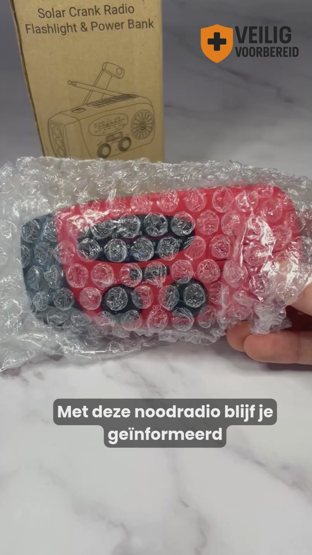 Als internet, telefonie en televisie uitvallen, ontstaat er snel een informatievacuüm. Geruchten nemen de overhand en je weet niet of je moet evacueren of binnenblijven. De regionale rampenzender (via FM of AM) is dan je enige betrouwbare bron. Een noodradio is daarom cruciaal. Onze pakketten bevatten radio's die werken op zonne-energie, opwindbaar zijn met een hendel én een USB-uitgang hebben. Zo blijf je altijd op de hoogte, ook zonder stopcontact of losse batterijen.